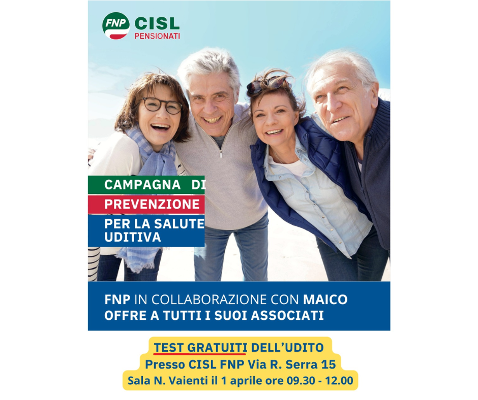 Tutti gli iscritti FNP CISL potranno effettuare un test dell’udito gratuito e accedere a sconti fino al 25% sugli apparecchi acustici.