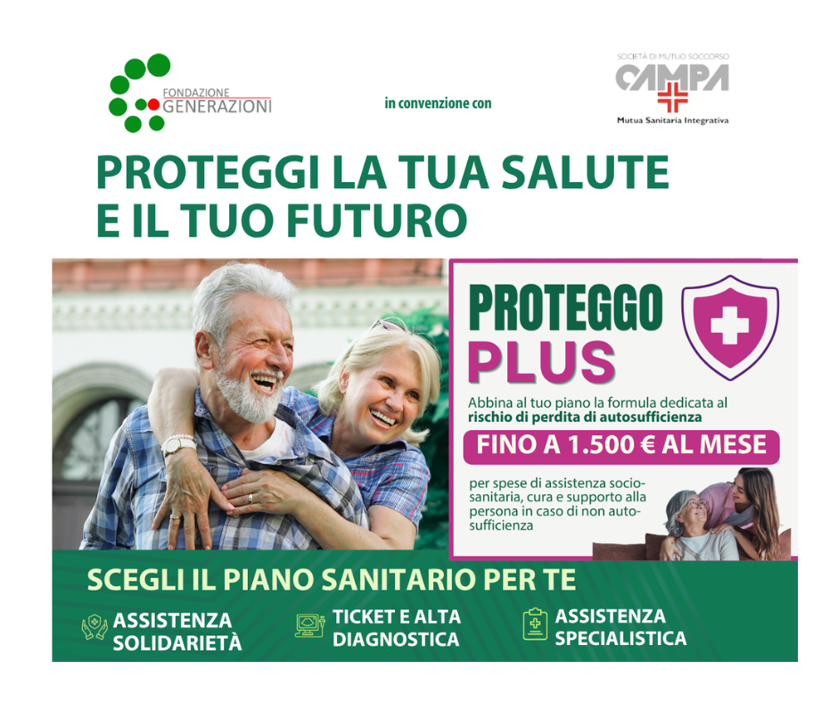 La salute e la serenità sono beni preziosi, soprattutto con l’avanzare dell’età. Scopri la convenzione tra Fondazione Generazioni e CAMPA – Mutua Sanitaria Integrativa, riservata agli iscritti CISL, che offre coperture sanitarie e strumenti di tutela pensati per accompagnarti nel tempo e per garantire maggiore sicurezza al tuo futuro.